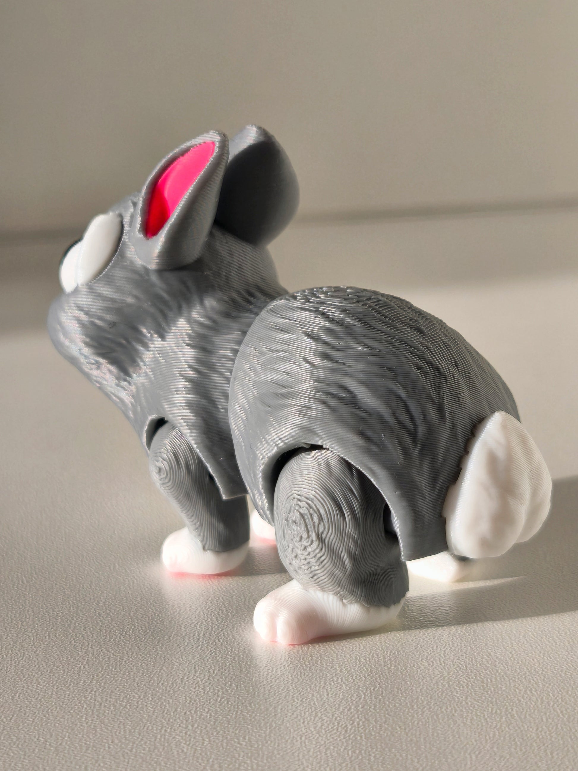 Roztomilá dekoratívna figúrka zajačika vyrobená pomocou 3D tlače. Ideálna ako darček pre deti, dekorácia do detskej izby alebo milý doplnok do interiéru. Jemné detaily a kompaktný rozmer z nej robia obľúbený kúsok pre každodennú radosť.